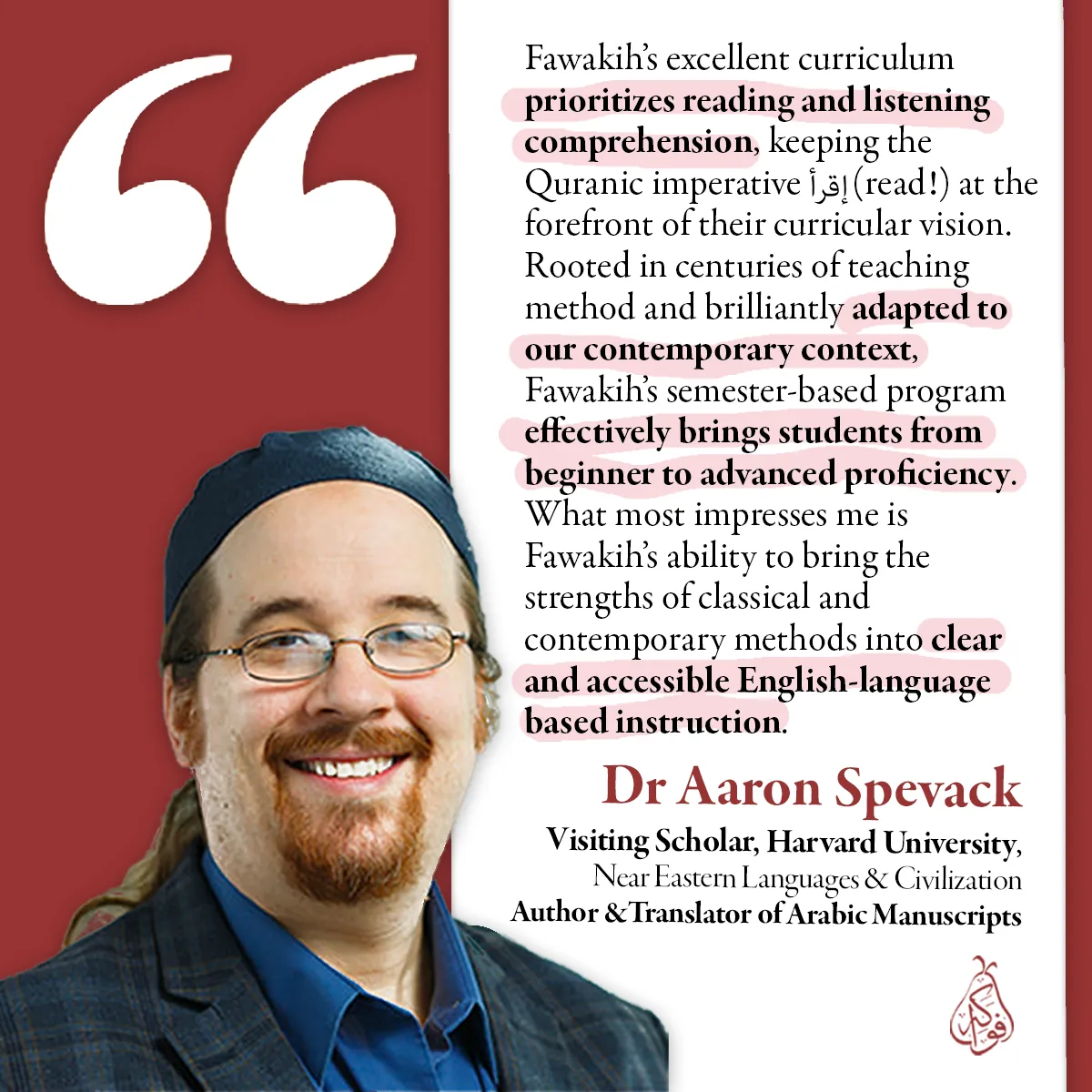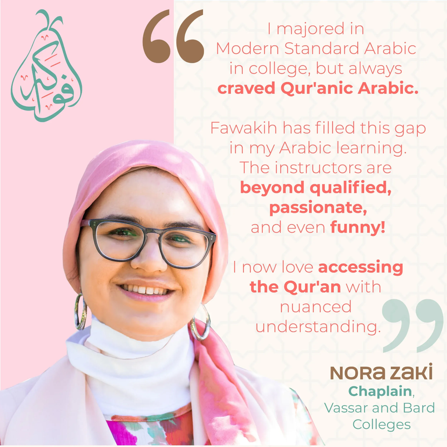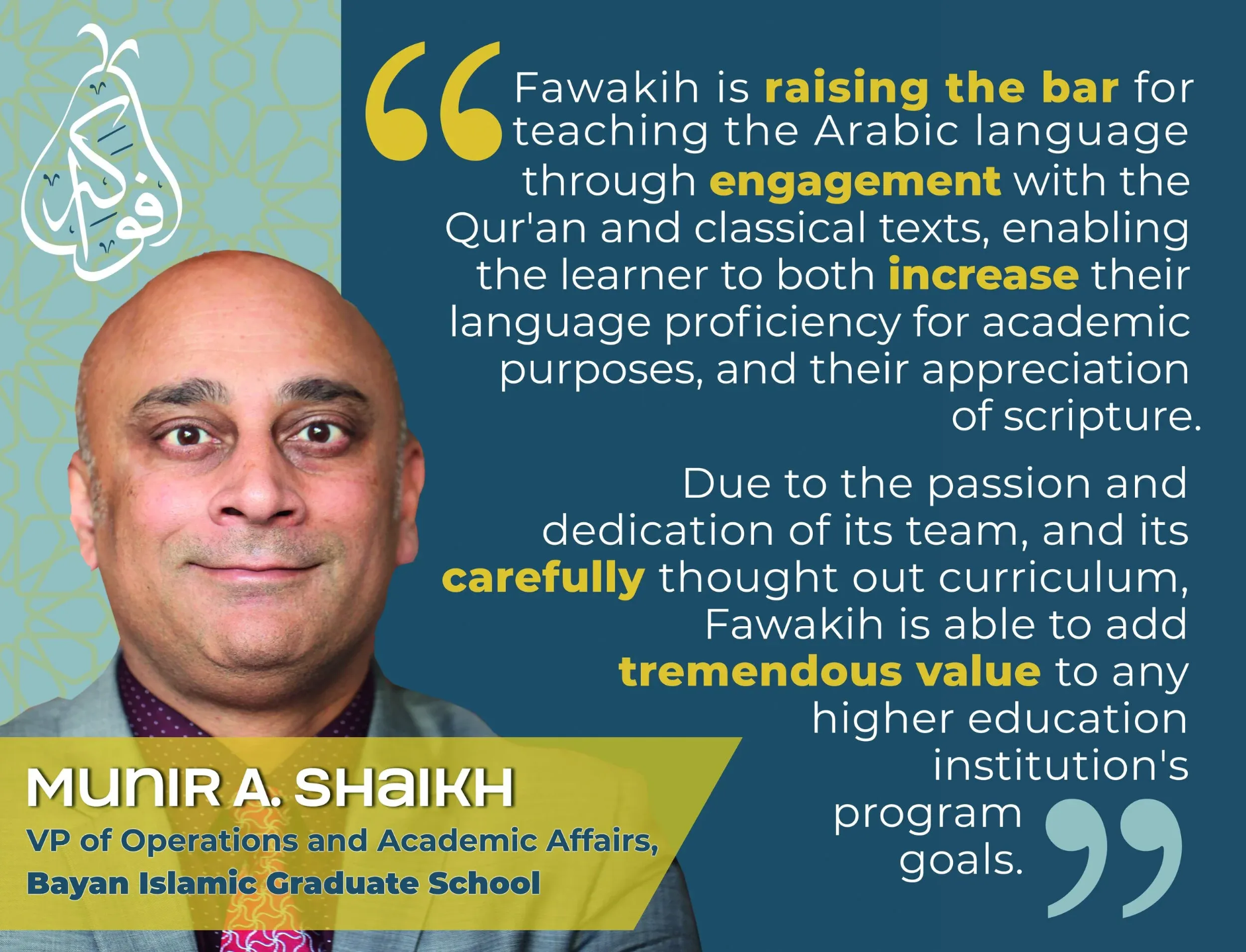 Fawakih was founded to solve one critical issue: making QurĘĽanic Arabic accessible. Fawakih envisions a future where understanding the QurĘĽan in its original language will nurture deeper connections and unlock more meaning.